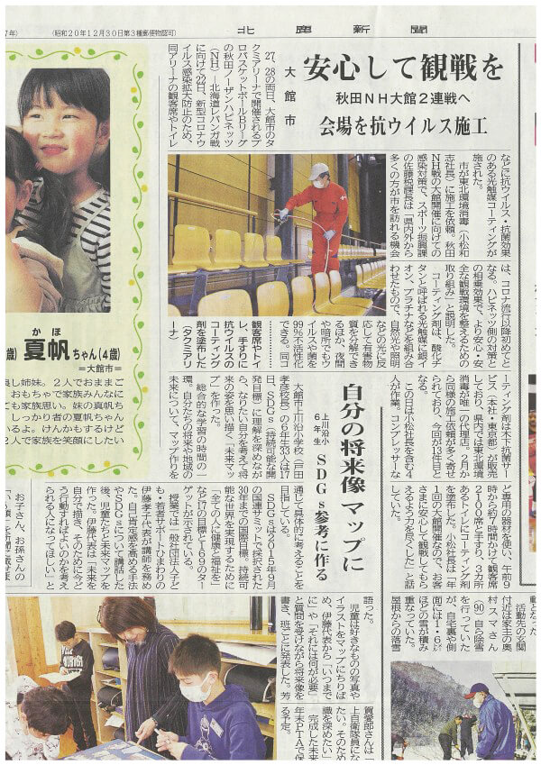 北鹿新聞さんで弊社の抗ウイルスコーティング「キノシールド」の施工を記事にして頂きました。