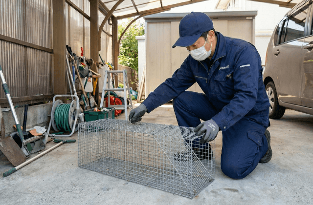 捕獲罠・忌避剤・封鎖資材などを準備。