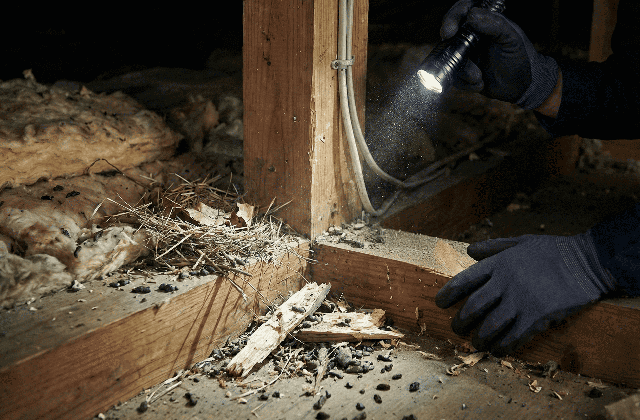 天井裏や壁の中、台所や倉庫などで物音やフン、かじられた痕跡を見つけたら、ねずみが侵入している可能性があります。