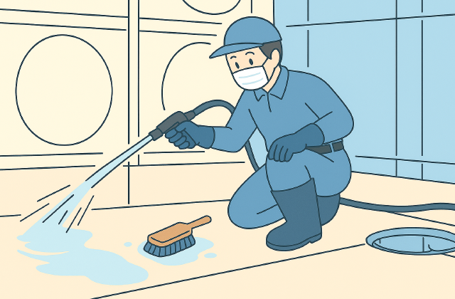 壁面・底部の洗浄作業
